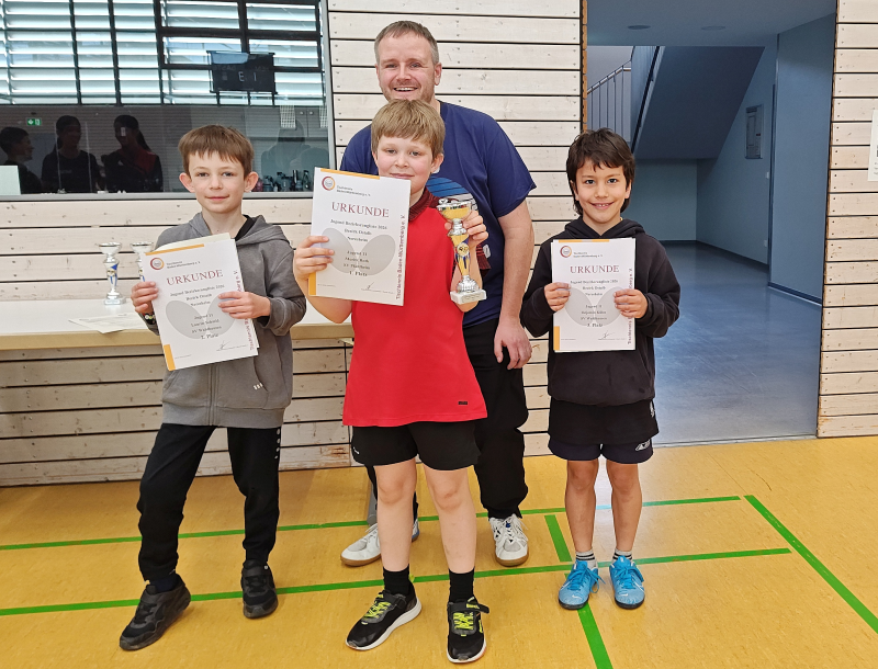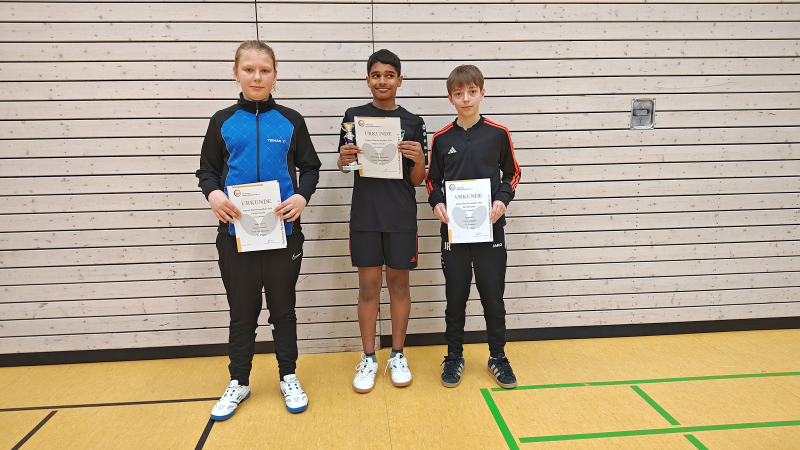 | Mädchen 11 1. Böhm, Melina (SV Neresheim) Mädchen 15 1. Surzhikova, Eva (TSG Hofherrnweiler) 2. Pham, Hamy (PSV Heidenheim) 3. Pham, Havy (PSV Heidenheim) 4. Zöllner, Kim Sarah (TSG Hofherrnweiler) 5. Weber, Hanna (SV Pfahlheim) 6. Erhardt, Ronja (SV Pfahlheim) 7. Roth, Paula (SV Pfahlheim) Mädchen 19 1. Garg, Aarushi (SV Waldhausen) 2. Wenzel, Kaja (TSG Hofherrnweiler) 3. Burger, Anna (TTC Königsbronn) 4. Bierkant, Larina (VfL Gerstetten) Jungen 11 1. Roth, Moritz (SV Pfahlheim) 2. Schmid, Laurin (SV Waldhausen) 3. Kühn, Benjamin (SV Waldhausen) 4. Walter, Karlson (PSV Heidenheim 5. Gölzer, Lukas (SV Zang) 6. Almohamed, Zaid (PSV Heidenheim) 7. Kaschta, Theodor (TTC Königsbronn) 8. Böhm, Melina (SV Neresheim) | Jungen 12 1. Egetenmeyr, Josef (SV Pfahlheim) 2. Laubersheimer, Leonard (PSV HDH) 3. Greiner, Jakob (VfL Gerstetten) 4. Graul, Mattis (TSV Westhausen) 5. Groos, Samuel (TSV Westhausen) 6. Barth, Timo (SV Bolheim) 7. Nadolny, Artur (TSV Westhausen) 8. Schairer, Lukas (TSV Westhausen) Jungen 13 1. Sijaric, Emin (PSV Heidenheim) 2. Eckhardt, Amos (VfL Gerstetten) 3. Duda, Lukas (TSV Westhausen) 4. Günther, Moritz (TSV Westhausen) 5. Weber, Lukas (TSV Westhausen) Jungen 14 1. Gopinath, Mathujan (AA-Sportallianz) 2. Rathgeb, Jonas (SV Lippach) 3. Gerner, Samuel (TSV Westhausen) 4. Schmid, Janis (SV Waldhausen) 5. Arnold, Robin (TSV Hüttlingen) 6. Single, Jan (SV Ebnat) 7. Münz, Valentin (TSG Hofherrnweiler) 8. Bauer, Aurelian (TSV Hüttlingen) 9. Engels, Liam (SV Zang) 10. Niess. Maxim (VfL Gerstetten) 11. Schwarz, Florian (TTC Königsbronn) 12. Fröhle, Julian (SV Neresheim) 13. Zimmer, Theo (SV Neresheim) 14. Grashauser, Micha (TSV Hüttlingen) 15. Grimminger, Florian (TSV Westhausen) | Jungen15 1. Kühn, Max (SV Waldhausen) 2. Herrmann, Jakob (SV Neresheim) 3. Kapfhammer, Theo (SV Waldhausen) 4. Gölzer, Adrian (SV Zang) 5. Hyneck, Frieder (PSV Heidenheim) 6. Kolak, Felix (TTC Königsbronn) 7. Mayr, Hannes (TSV Westhausen) 8. Opferkuch, Moritz (TSV Hüttlingen) 9. Görner, Hugo (TSV Hüttlingen) 10. Glorian, Tom (SV Neresheim) 11. Bauer, Benedikt (TSG Schnaitheim) Jungen 19 1. Ruf, Felix (TSG Hofherrnweiler) 2. Henkel, Fabian (TSG Hofherrnweiler) 3. Rubin, Julian (PSV Heidenheim) 4. Weih, Yannik (PSV Heidenheim) 5. Müller, Leonhard (TSV Westhausen) 6. Burger, Jona (TTC Königsbronn) 7. Scheuble, Oskar (TSG Schnaitheim) 8. Schmitt, Paul (PSC Heidenheim) 9. Neufischer, Maximilian (SV Neresheim) 10. Walter, Jakob (TSG Schnaitheim) 11. Foisner, Levin (SV Waldhausen) 12. Ehrensperger, Jonathan (TSG Hofherrnweiler) 13. Steiger, Felix (VfL Gerstetten) 14. Mayer, Jonas (VfL Gerstetten) |